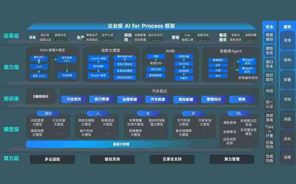端到端的一站式AI工作空间深度融合了从企业战略规划到日常经营的全流程业务板块,,,,定向解决车企内部领域多、、、、部门多、、、链条长、、、场景碎片化等难题,,,支持车企快速构建以AI为核心的生产力写作体系,,,,实现任务执行与AI能力的无缝集成与交互